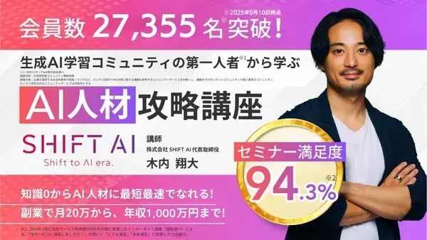 - 会員数2万人超!日本最大級のAI活用コミュニティ 初心者から現役エンジニアまで参加。「スクール選びで失敗したくない」なら、利用者数No.1(※1)のここが最適解。