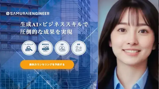 - 受講料が最大70%OFF!給付金対象 国のリスキーリング補助金を活用可能。金銭的な負担を大幅に抑えて本格的なAIスキルを習得できる。