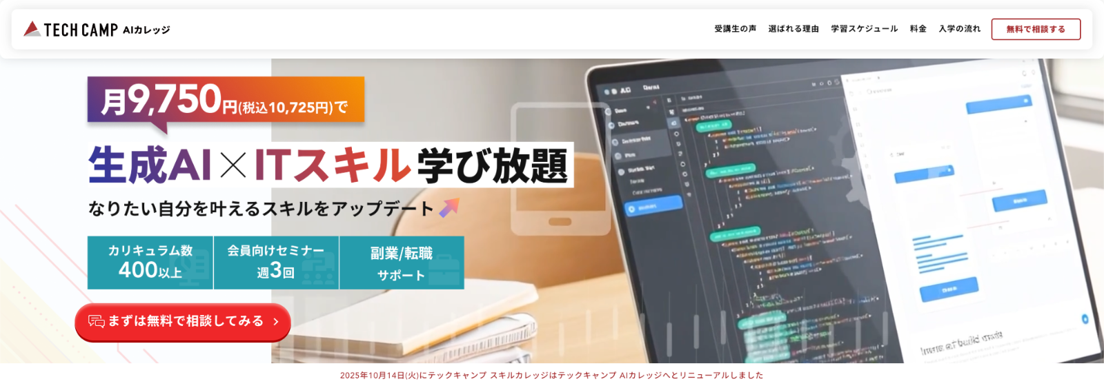 - 「学び」を即「収益」へ。副業・実務への直結サポート AI×副業でのマネタイズ講座が充実。学んだスキルで月20万も目指せる環境。